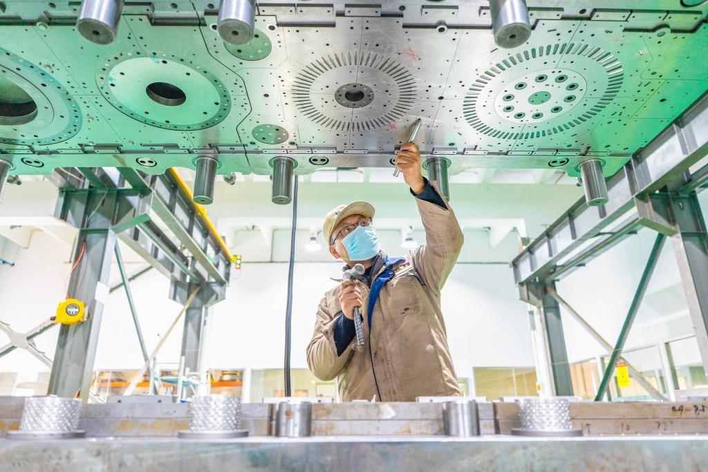 2025年12月15日,在位于江蘇省南通市通州區(qū)興仁鎮(zhèn)的江蘇富松模具科技有限公司車間內(nèi),工人趕制模具產(chǎn)品訂單。新華社發(fā)(翟慧勇攝)