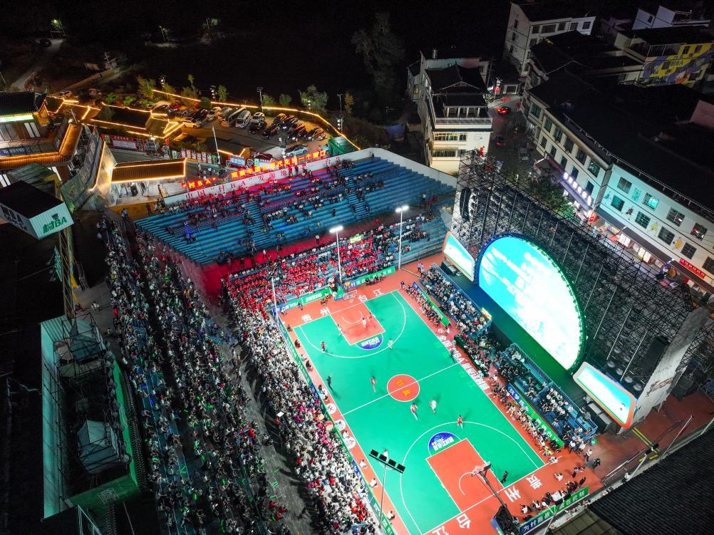 2025年10月12日,全國(guó)和美鄉(xiāng)村籃球大賽(“村BA”)總決賽在貴州省臺(tái)江縣臺(tái)盤(pán)村開(kāi)賽。新華社發(fā)(袁福洪攝)