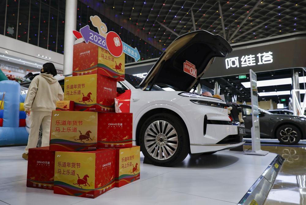 2026年2月8日,市民在北京合生匯商場(chǎng)了解新能源汽車。春節(jié)臨近,新能源車企紛紛推出優(yōu)惠政策,通過金融優(yōu)惠、贈(zèng)送禮品等方式吸引消費(fèi)者購買。此外,近日北京、上海、天津等多地發(fā)布2026年汽車以舊換新相關(guān)細(xì)則,報(bào)廢更新最高補(bǔ)貼2萬元,置換更新最高補(bǔ)貼1.5萬元。消費(fèi)者更新需求加快釋放,與產(chǎn)業(yè)轉(zhuǎn)型良性互動(dòng),推動(dòng)消費(fèi)市場(chǎng)擴(kuò)容“煥新”。