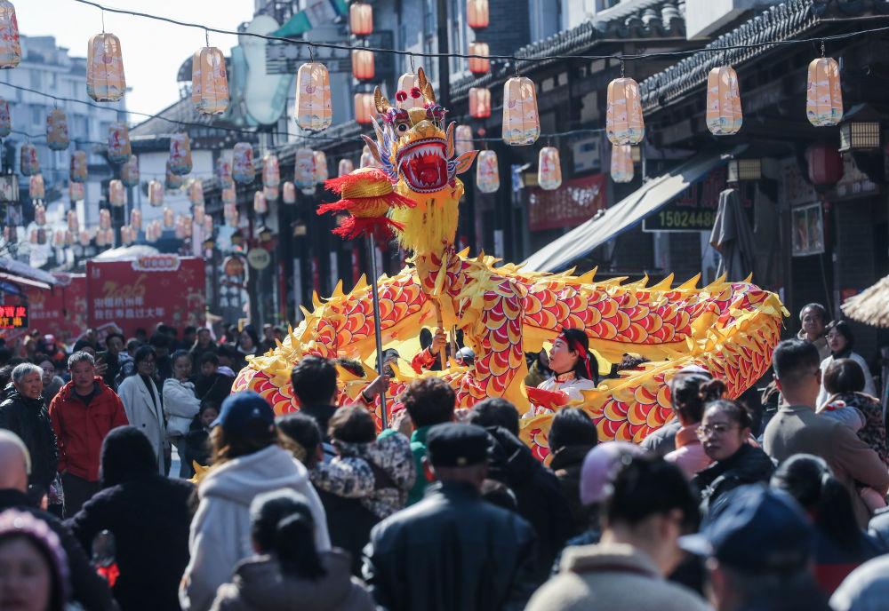 2026年2月8日,游客在浙江壽昌古鎮(zhèn)老街上觀看傳統(tǒng)舞龍表演。近期,浙江省建德市壽昌古鎮(zhèn)舉辦傳統(tǒng)民俗迎新春活動(dòng),民俗踩街、舞龍舞獅、馬年主題燈展等活動(dòng),吸引八方游客前來體驗(yàn)古鎮(zhèn)傳統(tǒng)年味,進(jìn)一步激活新春消費(fèi)市場(chǎng),為當(dāng)?shù)匚穆媒?jīng)濟(jì)發(fā)展注入新動(dòng)能。