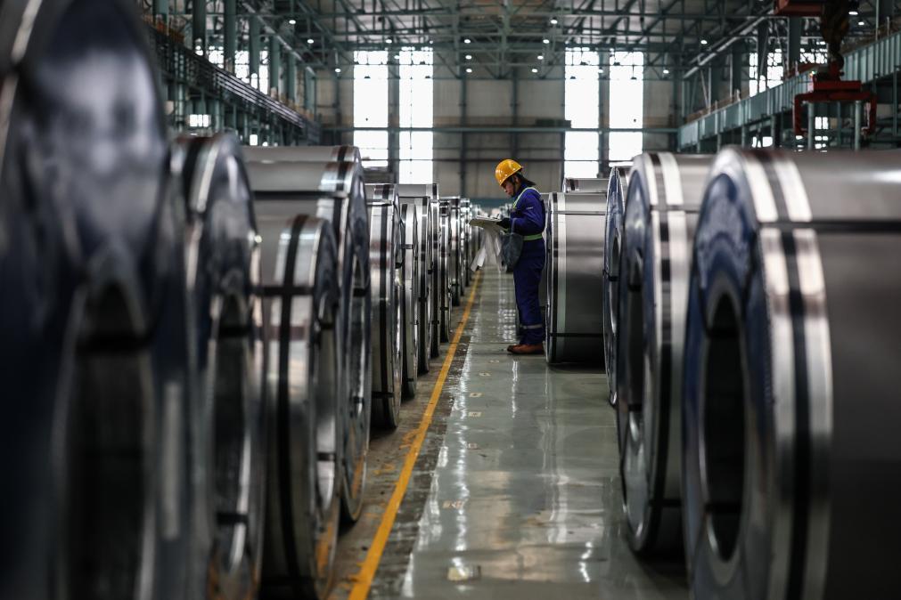 2025年12月6日,工作人員在本鋼板材冷軋總廠第三冷軋廠成品庫核對清點(diǎn)產(chǎn)品。新華社記者 潘昱龍 攝