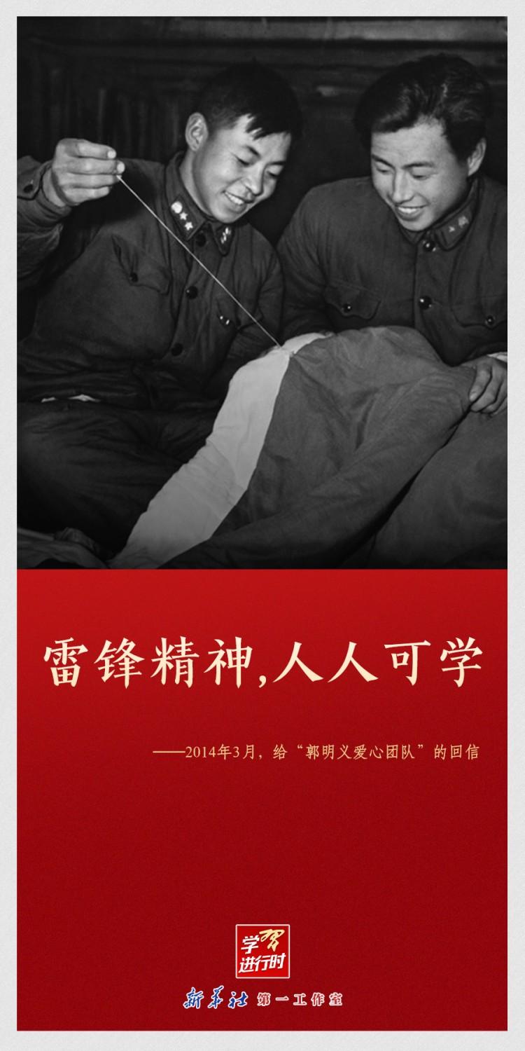 【學(xué)習(xí)進(jìn)行時(shí)】“雷鋒精神永不過時(shí)”“讓學(xué)雷鋒活動融入日常、化作經(jīng)?!薄袄卒h精神,人人可學(xué)”……黨的十八大以來,習(xí)近平總書記多次動情地談到雷鋒精神。在學(xué)雷鋒紀(jì)念日到來之際,讓我們一起重溫習(xí)近平總書記關(guān)于雷鋒精神的重要論述。