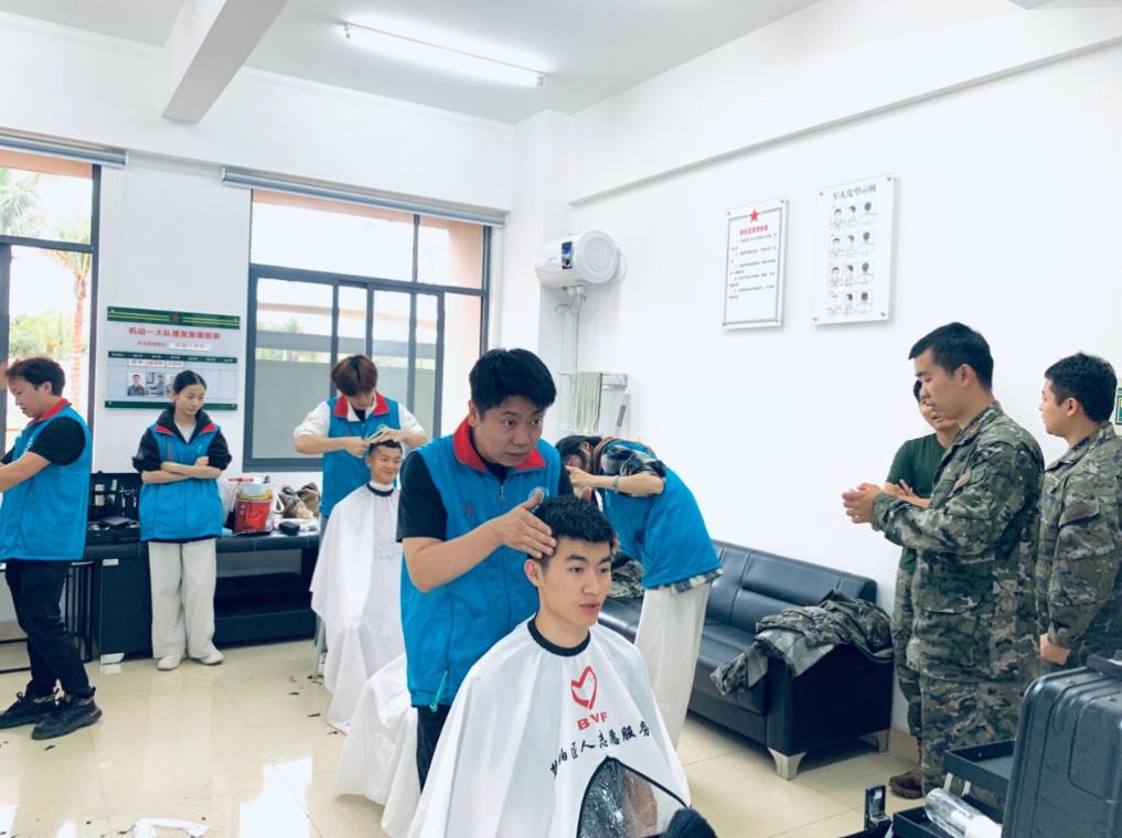 3月4日,北京“梵珀匠人志愿服務(wù)隊(duì)”和海南省技師學(xué)院師生開展義務(wù)理發(fā)志愿服務(wù)。(受訪者供圖)