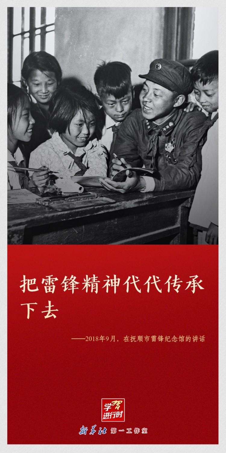 【學(xué)習(xí)進(jìn)行時】“雷鋒精神永不過時”“讓學(xué)雷鋒活動融入日常、化作經(jīng)?!薄袄卒h精神,人人可學(xué)”……黨的十八大以來,習(xí)近平總書記多次動情地談到雷鋒精神。在學(xué)雷鋒紀(jì)念日到來之際,讓我們一起重溫習(xí)近平總書記關(guān)于雷鋒精神的重要論述。