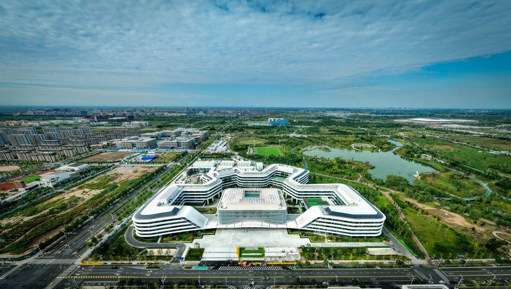 2023年6月30日,中共中央政治局召開會議,審議《關(guān)于支持高標(biāo)準(zhǔn)高質(zhì)量建設(shè)雄安新區(qū)若干政策措施的意見》。此后,一攬子特殊支持政策陸續(xù)落地雄安新區(qū)。2023年10月16日,雄安宣武醫(yī)院開診。首都醫(yī)科大學(xué)宣武醫(yī)院派來管理團(tuán)隊(duì)及骨干醫(yī)生,重點(diǎn)服務(wù)疏解人員和新區(qū)群眾,并輻射京津冀地區(qū)。這是2023年9月30日拍攝的雄安宣武醫(yī)院(無人機(jī)照片)。