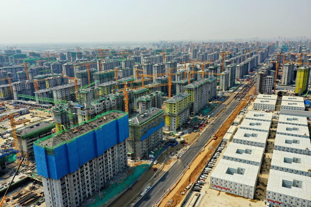 2021年是雄安新區(qū)大規(guī)模開發(fā)建設(shè)向縱深發(fā)展的關(guān)鍵一年。容東片區(qū)是雄安新區(qū)開發(fā)建設(shè)的先行區(qū)域,擔(dān)負(fù)著承接北京非首都功能疏解和安置回遷群眾的重要任務(wù)。這是2021年4月8日拍攝的雄安新區(qū)容東片區(qū)安置房項(xiàng)目建設(shè)現(xiàn)場(無人機(jī)照片)。2021年10月,容東第一批安置房開始交付。