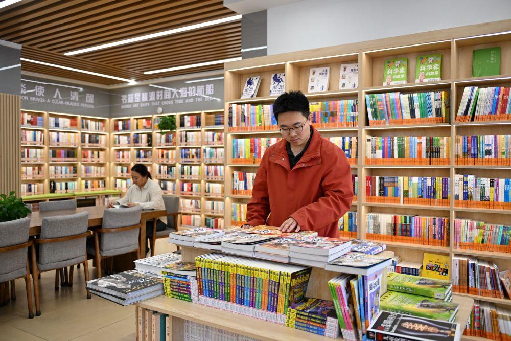 2025年3月25日,居民在雄安新區(qū)容西片區(qū)賢溪社區(qū)XIN空間公益圖書館挑選書籍。