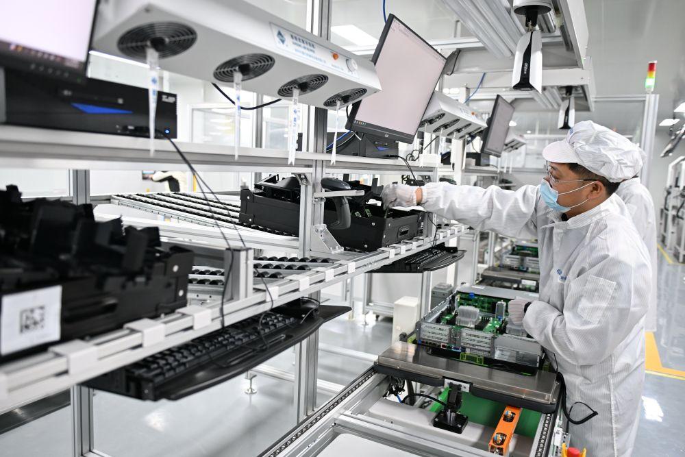 2026年3月11日,在雄安科創(chuàng)中心中試基地,雄安百信信息科技有限公司工人在服務(wù)器生產(chǎn)線上工作。