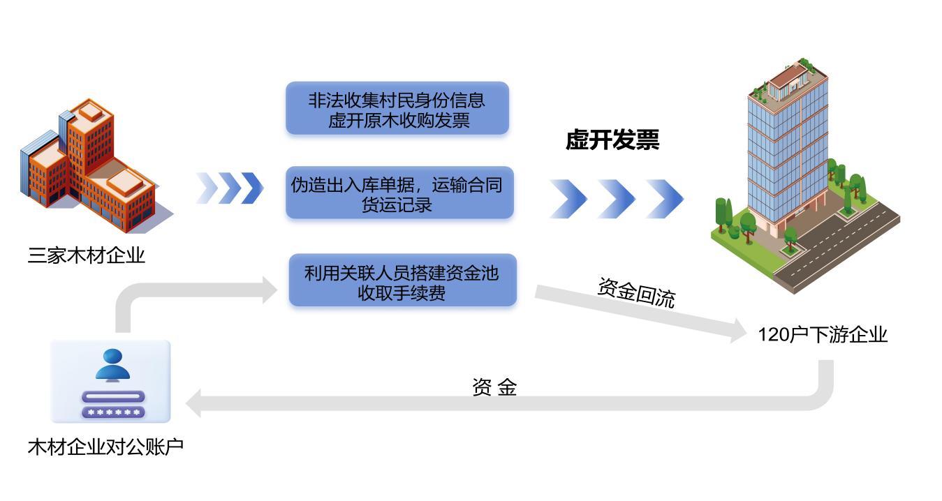 至此,在專案組的全方位徹查下,涼山布拖縣3戶企業(yè)實(shí)為“道具工廠”徹底現(xiàn)形:以劉楊、公大偉為首的犯罪團(tuán)伙,通過(guò)設(shè)立3戶木業(yè)公司,以用工為名,非法收集村民身份信息,為自己虛開原木收購(gòu)發(fā)票;同時(shí)通過(guò)購(gòu)買二手設(shè)備、臨時(shí)雇傭人員等手段營(yíng)造生產(chǎn)假象,為他人虛開板材類增值稅專用發(fā)票。