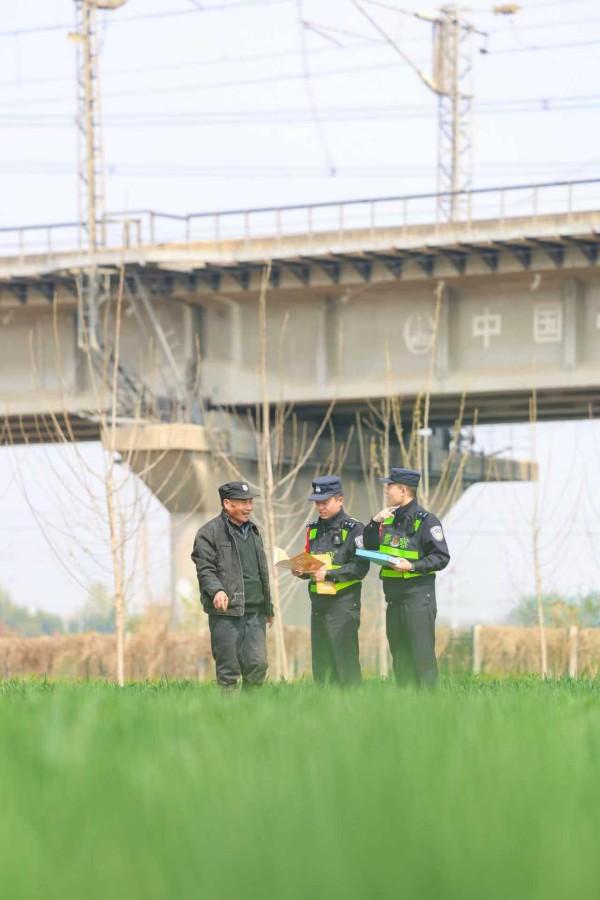 圖為濰坊站派出所民警向沿線踏青出游的居民普及線路安全防范知識(shí)。