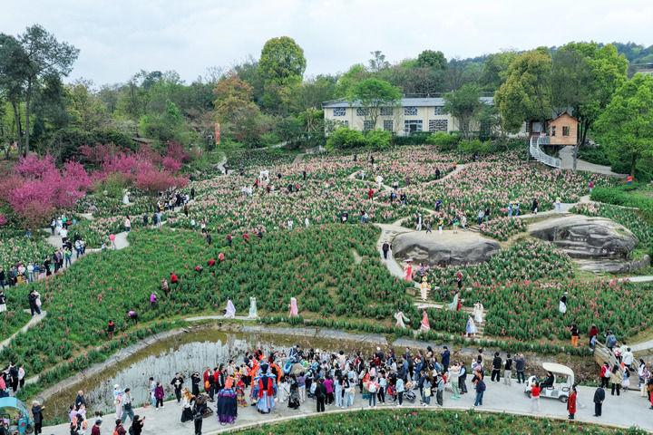 2026年3月22日,游客在重慶市巴南區(qū)二圣鎮(zhèn)集體村云林天鄉(xiāng)景區(qū)踏青游玩(無(wú)人機(jī)照片)。近年來(lái),重慶市巴南區(qū)二圣鎮(zhèn)集體村依托云林天鄉(xiāng)景區(qū),發(fā)展都市休閑觀(guān)光農(nóng)業(yè),深入推進(jìn)農(nóng)文旅深度融合發(fā)展,通過(guò)打造油菜花、金魚(yú)草等不同品種的四季高山花海主題景區(qū),實(shí)現(xiàn)從過(guò)去苗木基地“賣(mài)苗木”到鄉(xiāng)村旅游“賣(mài)景觀(guān)”的轉(zhuǎn)變,帶動(dòng)村民增收致富。新華社記者 黃偉 攝