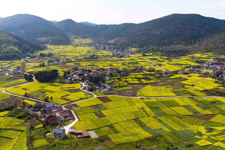 3月28日拍攝的漢中市南鄭區(qū)陽(yáng)春鎮(zhèn)陳村的油菜花海(無(wú)人機(jī)照片)。新華社記者 鄒競(jìng)一 攝