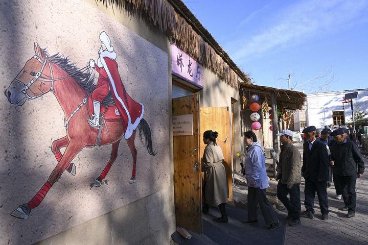 2026年4月3日,人們排隊進入新疆昭蘇縣燈塔知青館嬌龍廳獻花,追憶賀嬌龍同志為當地經濟社會發(fā)展、文旅品牌打造、農牧民增收致富作出的貢獻。新華社記者 胡虎虎 攝