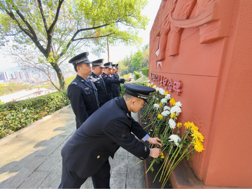 在烈士紀(jì)念碑前,民警警容嚴(yán)整、列隊(duì)肅立,向革命先烈敬禮,表達(dá)崇高敬意。民警們依次上前敬獻(xiàn)鮮花,圍繞紀(jì)念碑緩步繞行一周,瞻仰碑文、追憶英烈事跡。隨后全體民警默哀、三鞠躬,緬懷革命烈士。