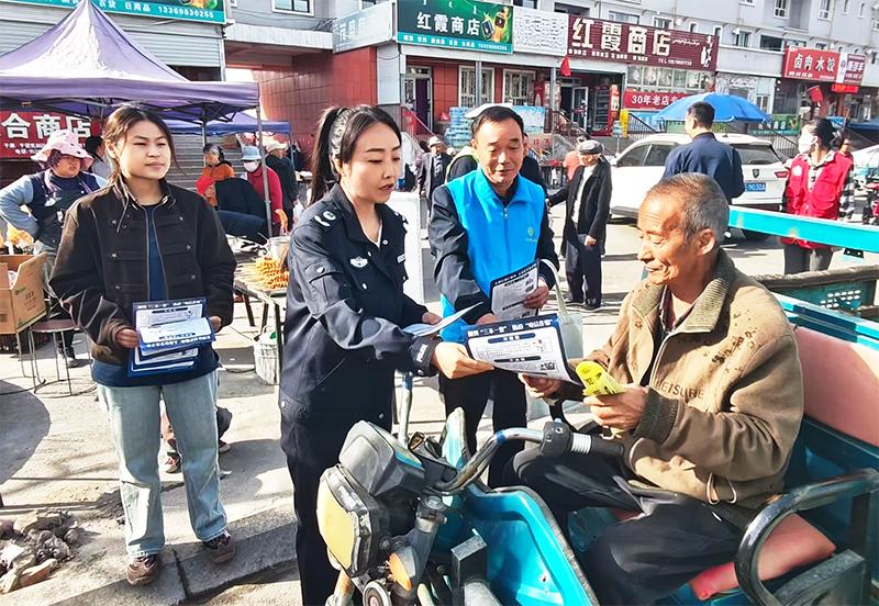 春季農(nóng)忙時(shí)節(jié),群眾農(nóng)事作業(yè)與出行需求激增,道路交通安全風(fēng)險(xiǎn)隱患隨之上升。為從源頭預(yù)防和減少道路交通事故,以法治力量守護(hù)群眾春耕生產(chǎn)和出行安全,4月7日,新疆生產(chǎn)建設(shè)兵團(tuán)第五師八十四團(tuán)司法所聯(lián)合博樂墾區(qū)公安局交警大隊(duì)、八十四團(tuán)平安法治建設(shè)辦公室等部門,以趕集日為契機(jī),走進(jìn)集市開展《中華人民共和國(guó)道路交通安全法》宣傳活動(dòng),將行車安全知識(shí)與交通法律法規(guī)送到群眾身邊,為構(gòu)建良好的交通環(huán)境注入法治力量。
