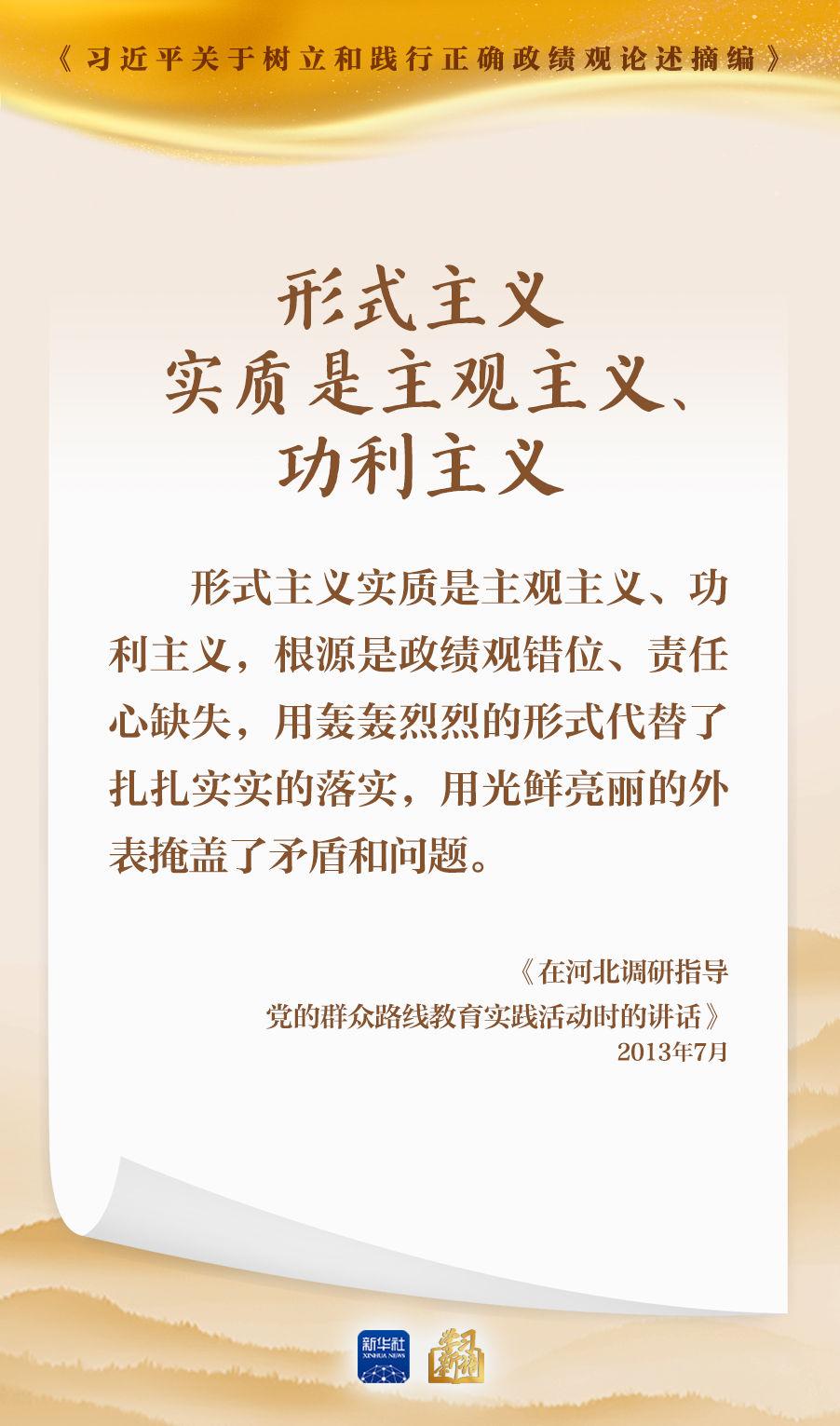 “形式主義實(shí)質(zhì)是主觀主義、功利主義,根源是政績(jī)觀錯(cuò)位、責(zé)任心缺失。”習(xí)近平總書記高度重視加強(qiáng)黨的作風(fēng)建設(shè),針對(duì)反對(duì)形式主義官僚主義等、樹立和踐行正確政績(jī)觀作出一系列重要論述。我們選取《習(xí)近平關(guān)于樹立和踐行正確政績(jī)觀論述摘編》一書中的相關(guān)論述,一起學(xué)習(xí)領(lǐng)會(huì)。
