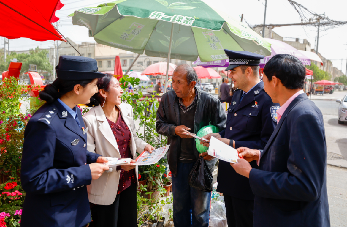 4月12日,新疆維吾爾自治區(qū)葉城縣依提木孔鎮(zhèn)派出所民輔警借助每周的趕集日,在集市設(shè)起“法治小攤”、擺放宣傳展板、備好宣傳手冊,以接地氣的方式將法律知識送到群眾身邊。
