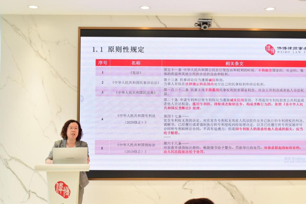 2025年9月5日,由北京市偉博律師事務(wù)所(以下簡(jiǎn)稱“偉博律所”)主辦的“知識(shí)產(chǎn)權(quán)惡意訴訟疑難問(wèn)題與實(shí)務(wù)研究”講座在北京CBD陽(yáng)光金融中心偉博律所北京總部舉辦。偉博律所高級(jí)合伙人范秀霞律師擔(dān)任主講人,從法律規(guī)定、認(rèn)定標(biāo)準(zhǔn)、司法實(shí)踐、國(guó)際比較及實(shí)務(wù)建議五個(gè)方面系統(tǒng)梳理了惡意訴訟的現(xiàn)狀與挑戰(zhàn)。