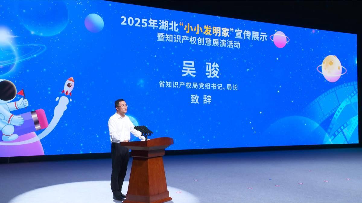 活動在武漢市光谷第二十一小學樂隊和機器人共同帶來的開場秀《閃耀明天》中拉開帷幕。湖北省知識產(chǎn)權局局長吳駿致辭表示,此次活動旨在為全省熱愛科學、勇于創(chuàng)新的青少年們搭建一個激發(fā)靈感、展示才華、交流互鑒的廣闊平臺,讓創(chuàng)新的種子在幼小的心靈中生根發(fā)芽,讓知識產(chǎn)權的理念在青春的土壤里茁壯成長。他親切寄語“小小發(fā)明家”,永葆好奇之心,敢于提問,善于思考,勤于動手,將天馬行空的想象變成創(chuàng)新創(chuàng)造的作品;初識知識產(chǎn)權,了解它、尊重它、運用它,學會保護創(chuàng)意,尊重發(fā)明創(chuàng)造;同時志存高遠,將今天的興趣發(fā)展成為明天的志向,努力成長為科技自立自強的棟梁之材。