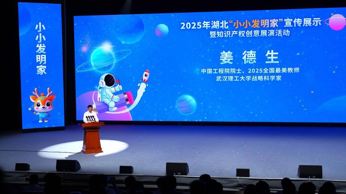 “小手拉大手,創(chuàng)新一起走?!?月23日下午,為大力激發(fā)廣大青少年尊重知識、崇尚創(chuàng)新意識,構(gòu)建覆蓋全省中小學生的科技創(chuàng)新活動平臺,由湖北省知識產(chǎn)權局主辦、湖北省發(fā)明協(xié)會與極目新聞承辦的2025年湖北“小小發(fā)明家”宣傳展示暨知識產(chǎn)權創(chuàng)意展演活動在東湖之濱圓滿舉行。中國工程院院士、2025年全國最美教師、武漢理工大學戰(zhàn)略科學家姜德生教授出席活動并為青少年開講。