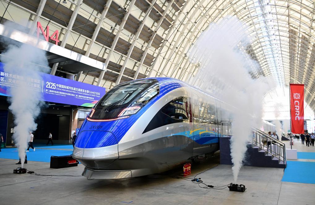 2025年9月18日,由中國中車自主研制且擁有完全自主知識產(chǎn)權(quán)的首列中國標(biāo)準(zhǔn)智能市域列車暨京雄快線列車在青島亮相。新華社記者 李紫恒 攝