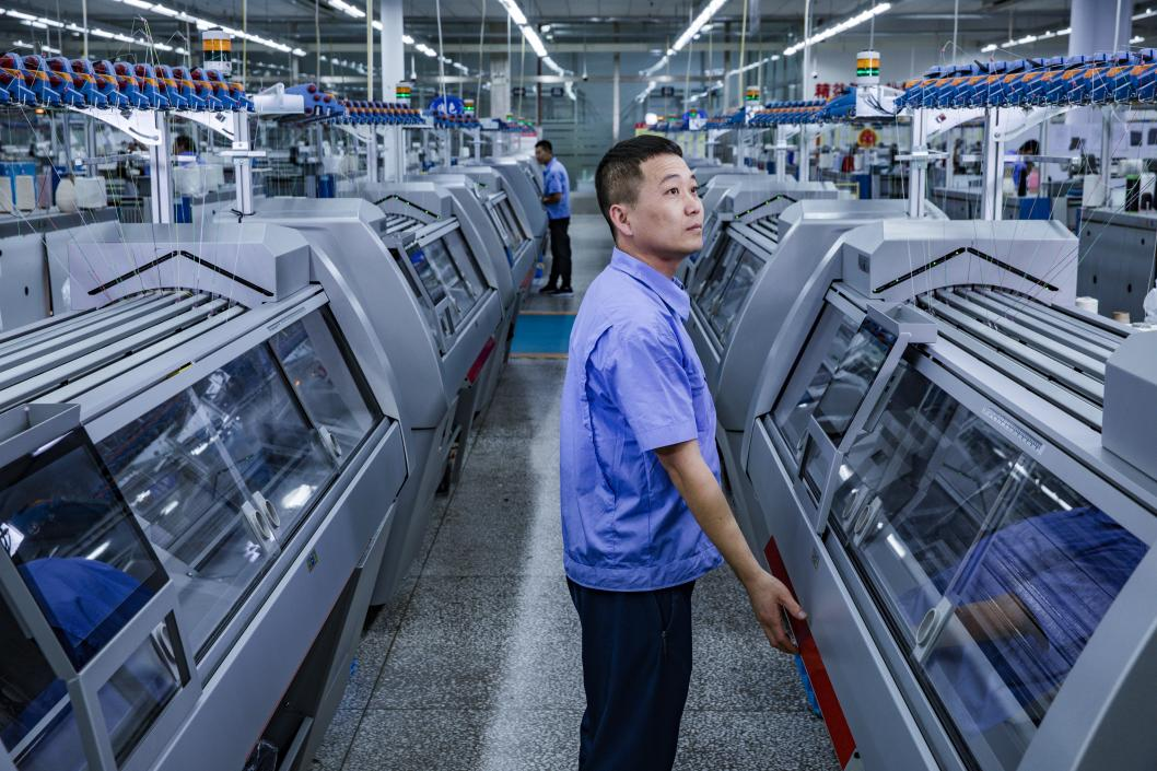 圖為鄂爾多斯集團(tuán)羊絨產(chǎn)品編織車間。