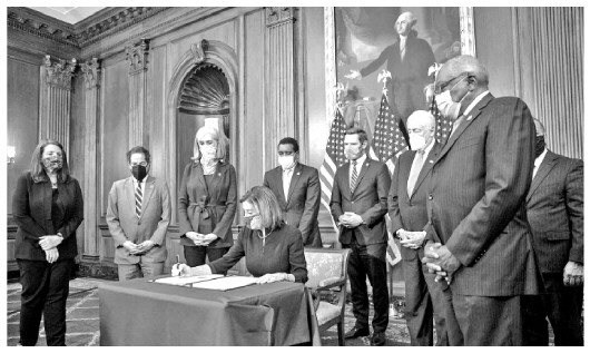 當(dāng)?shù)貢r(shí)間1月11日,鑒于6日發(fā)生的國(guó)會(huì)騷亂事件,眾議院民主黨人正式提交針對(duì)特朗普的彈劾條款草案。彈劾條款指控特朗普“煽動(dòng)叛亂”,要求對(duì)其進(jìn)行“彈劾和審判,并免除其總統(tǒng)職務(wù),取消其擁有的相關(guān)榮譽(yù)、信用和有酬職位資格”。13日下午,美國(guó)國(guó)會(huì)眾議院兩黨議員經(jīng)過(guò)辯論后以232票贊成、197票反對(duì),通過(guò)了針對(duì)特朗普的彈劾案。眾議院全體民主黨人以及10名共和黨人投了贊成票。