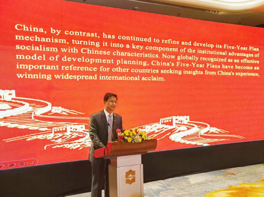戚振宏表示,中國共產(chǎn)黨二十屆四中全會審議通過的“十五五”規(guī)劃建議,是中國今后五年經(jīng)濟(jì)社會發(fā)展的宏偉藍(lán)圖,也展示了中國與世界合作共贏的美好愿景??茖W(xué)制定和接續(xù)實(shí)施五年規(guī)劃,是中國共產(chǎn)黨治國理政一條重要經(jīng)驗(yàn),也是中國特色社會主義一個重要政治優(yōu)勢。中國五年規(guī)劃是被實(shí)踐證明了的成功發(fā)展規(guī)劃,成為世界各國借鑒中國經(jīng)驗(yàn)的重要方面,贏得廣泛國際贊譽(yù)。戚振宏介紹了中國“十四五”時期取得的重大成就及“十五五”規(guī)劃提出的未來五年中國經(jīng)濟(jì)社會發(fā)展七個主要目標(biāo),強(qiáng)調(diào)中國將以新發(fā)展為世界各國提供新機(jī)遇。戚振宏指出,與中國同行就是與機(jī)遇同行,相信中國就是相信明天,投資中國就是投資未來。中斯傳統(tǒng)友誼源遠(yuǎn)流長,兩國是發(fā)展振興的同路人、合作共贏的好伙伴。斯里蘭卡“繁榮國家、幸福生活”美好愿景以及“清潔蘭卡”“數(shù)字轉(zhuǎn)型”和“鄉(xiāng)村發(fā)展”三大規(guī)劃與中國“十五五”規(guī)劃中有關(guān)內(nèi)容高度契合,中方愿同斯方加強(qiáng)發(fā)展戰(zhàn)略對接,在高質(zhì)量共建“一帶一路”框架下,共同拓展港口經(jīng)濟(jì)、現(xiàn)代農(nóng)業(yè)、數(shù)字經(jīng)濟(jì)、綠色經(jīng)濟(jì)、旅游等合作,助力斯里蘭卡經(jīng)濟(jì)社會發(fā)展,為兩國人民創(chuàng)造更多福祉,攜手打造中斯命運(yùn)共同體。