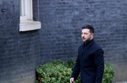 10月24日,在英國倫敦,烏克蘭總統(tǒng)澤連斯基走向唐寧街10號首相府。新華社記者李穎攝
