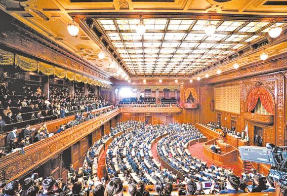 圖為2月18日在日本東京拍攝的日本國會(huì)眾議院首相指名選舉現(xiàn)場(chǎng)。 新華社記者 賈浩成 攝
