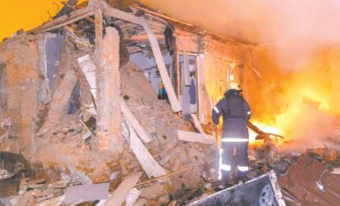 圖為當(dāng)?shù)貢r間2026年2月26日,烏克蘭哈爾科夫,一名消防員正在撲滅俄羅斯襲擊后受損房屋的火災(zāi)。 CFP供圖
