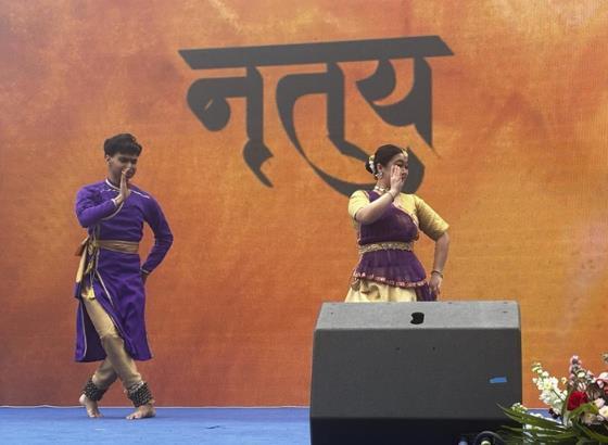 中印兩國(guó)專業(yè)舞者帶來的卡塔克雙人舞表演。周錦佳攝