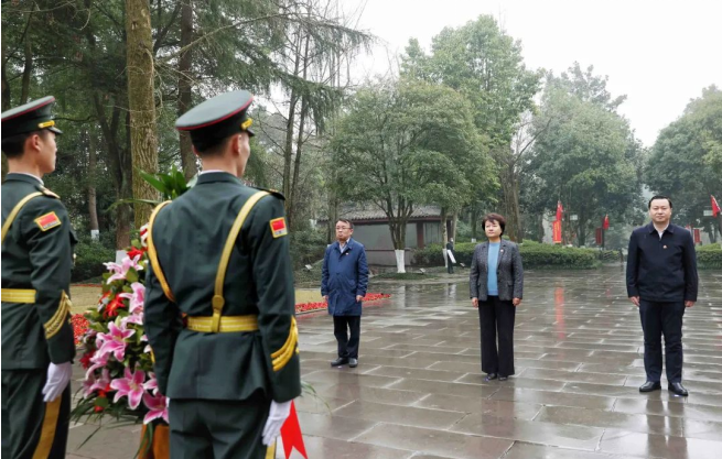 在鄧小平故居,葛曉燕在鄧小平銅像前敬獻(xiàn)花籃,瞻仰小平故居,觀看陳列館文物,深切緬懷小平同志在革命、建設(shè)和改革發(fā)展時(shí)期的豐功偉績。