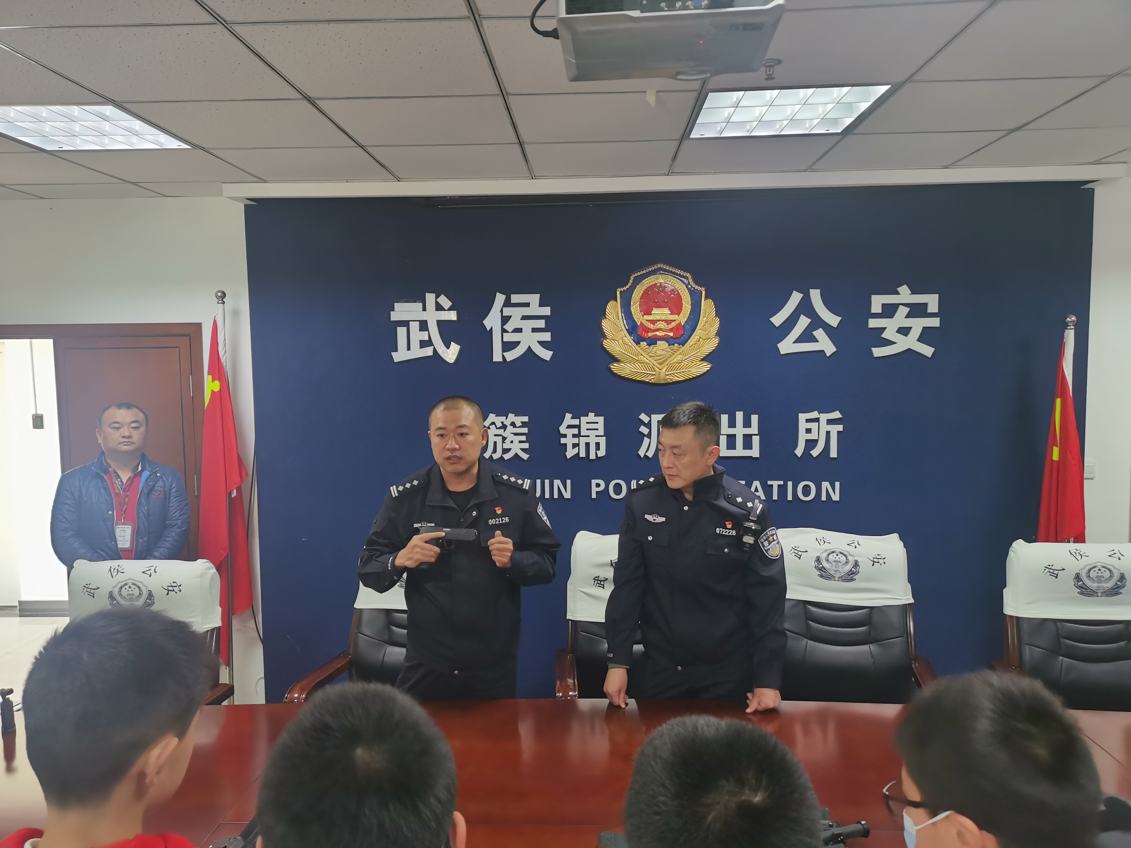在四川省成都市武侯區(qū)簇錦派出所的會(huì)議室里,參加“警營開放日”的北京第二外國語學(xué)院成都附屬學(xué)校的同學(xué)們正圍繞警用武器裝備熱烈討論著,民警耐心為他們一一講解著各種武器裝備的名稱、用途、性能等知識(shí),引來了同學(xué)們的陣陣贊嘆。