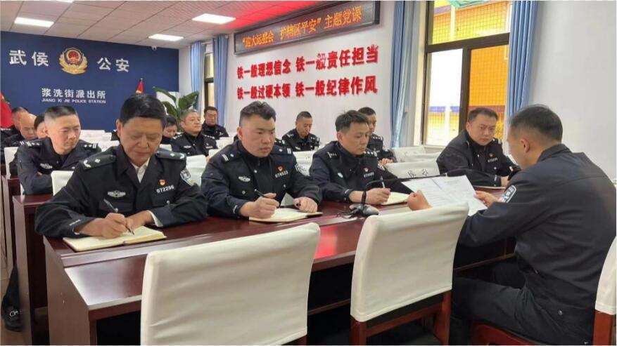 “同志們,我先代表支部班子表個態(tài):我們將身先士卒,始終帶頭站在大運安保第一線,帶著大家一起干!”在四川省成都市武侯公安漿洗街派出所的會議室里,派出所黨支部正在開展“迎大運盛會、護轄區(qū)平安”主題黨課活動。黨支部書記、所長熊建在表態(tài)后,向全體黨員民警發(fā)出倡議:“也請每一名黨員民警積極響應號召,充分發(fā)揮先鋒模范作用,團結(jié)帶領全所民輔警全力投入,堅決守護大運會的絕對安全!”