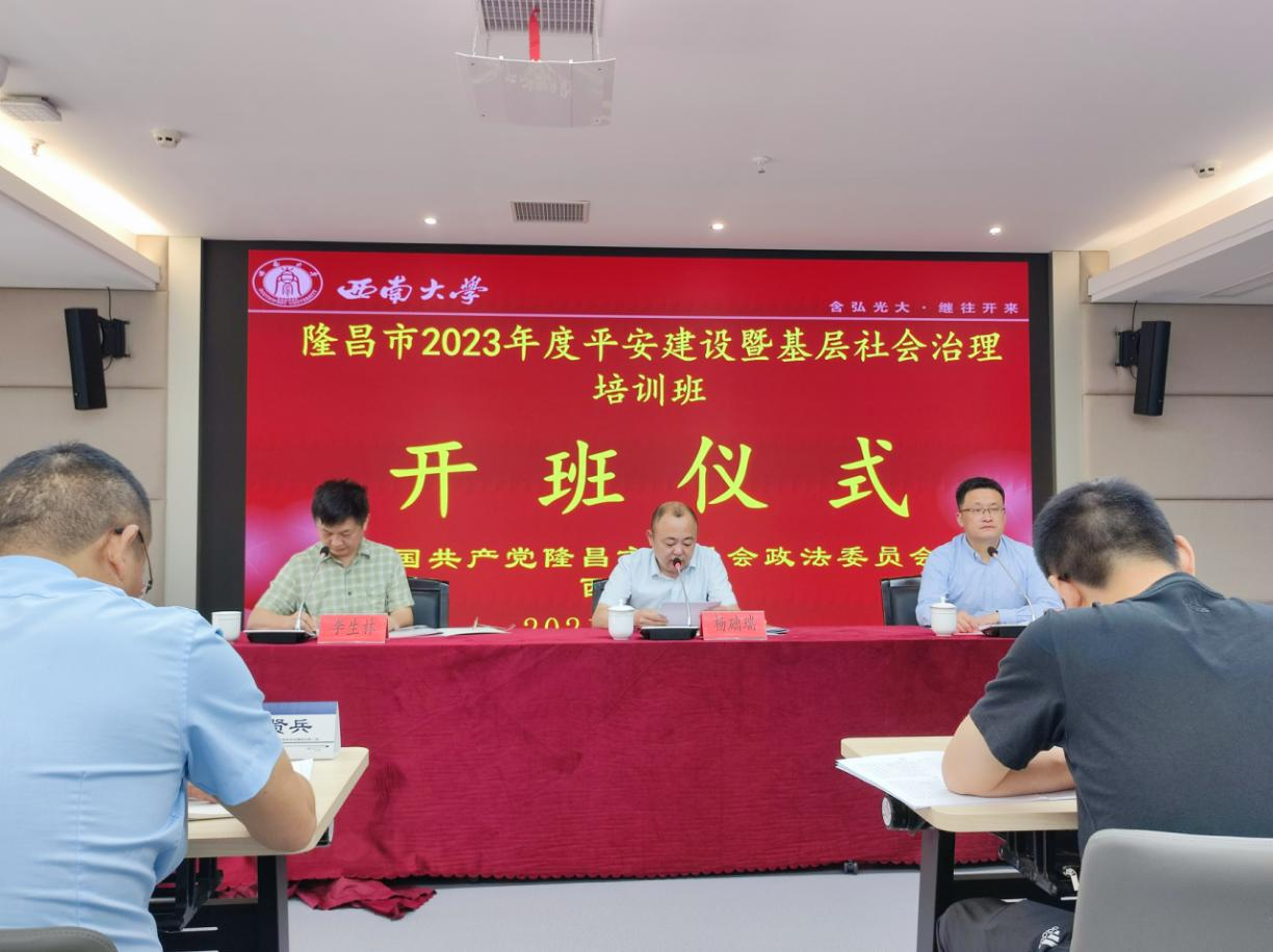 為進一步提升隆昌政法工作現(xiàn)代化水平,5月15日上午,四川省隆昌市2023年平安建設暨基層社會治理培訓班在西南大學順利開班。該市市委常委、政法委書記楊礎瑞出席開班儀式并作動員講話,西南大學人工智能學院黨委書記夏俊致歡迎辭,各鎮(zhèn)(街道)政法委員、社治辦主任,政法干警,相關市級部門領導和業(yè)務骨干參加本期培訓班。