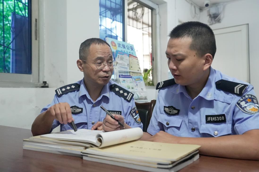 10月1日早會完畢,老葛就和徒弟萬訊開始“盤貨”,從臺賬到筆錄,一個“拎重點”、一個“記筆記”?!白錾鐓^(qū)民警,沒別的,就是勤快點、仔細點,轄區(qū)里的人口、出租房、單位,每日的警情,什么時候你不看本子不看電腦,隨時隨地都能說出來,你就真的出師了......”老葛一邊給萬訊交代著,一邊跨上了他的電瓶車,風風火火地趕往棕南社區(qū),開展節(jié)日期間消防安全防范宣傳。