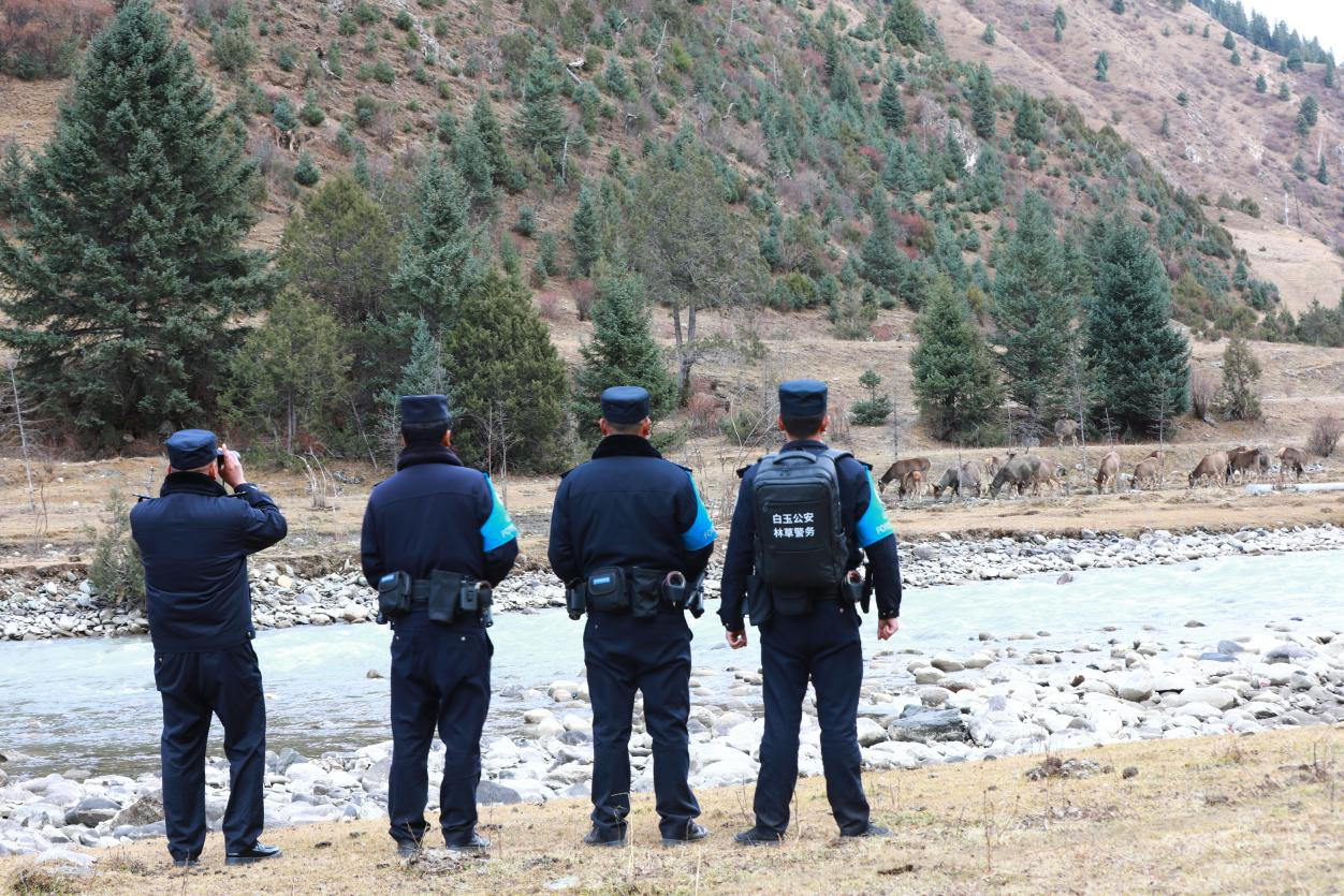 白玉縣共有森林面積53萬公頃,森林蓄積量位居全省第二、全州第一。3000多只白唇鹿,常年現(xiàn)身轄區(qū)察青松多自然保護區(qū)奔跑嬉戲,這是他眼里最靈動的風景線。自2013年4月在白玉縣森林公安局參加工作以來,8年時間他都與林為伍,堅守在護航生態(tài)安全第一線,為“金沙林海盛德白玉”的名號越唱越響作出了突出的貢獻。2017年大年三十晚上,他成功偵破“2017.02.03”非法獵捕殺害珍貴瀕危野生動物白唇鹿案,嫌犯被判處有期徒刑10年半,在全縣上下形成了空前的高壓震懾態(tài)勢。2023年11月9日傍晚,高照洪和森警大隊聯(lián)合巡山途中,在麻絨鄉(xiāng)察青松多自然保護區(qū)偶遇上百只下山喝水覓食的白唇鹿,可愛同框成為了一段舉國熟知的人與自然和諧佳話。