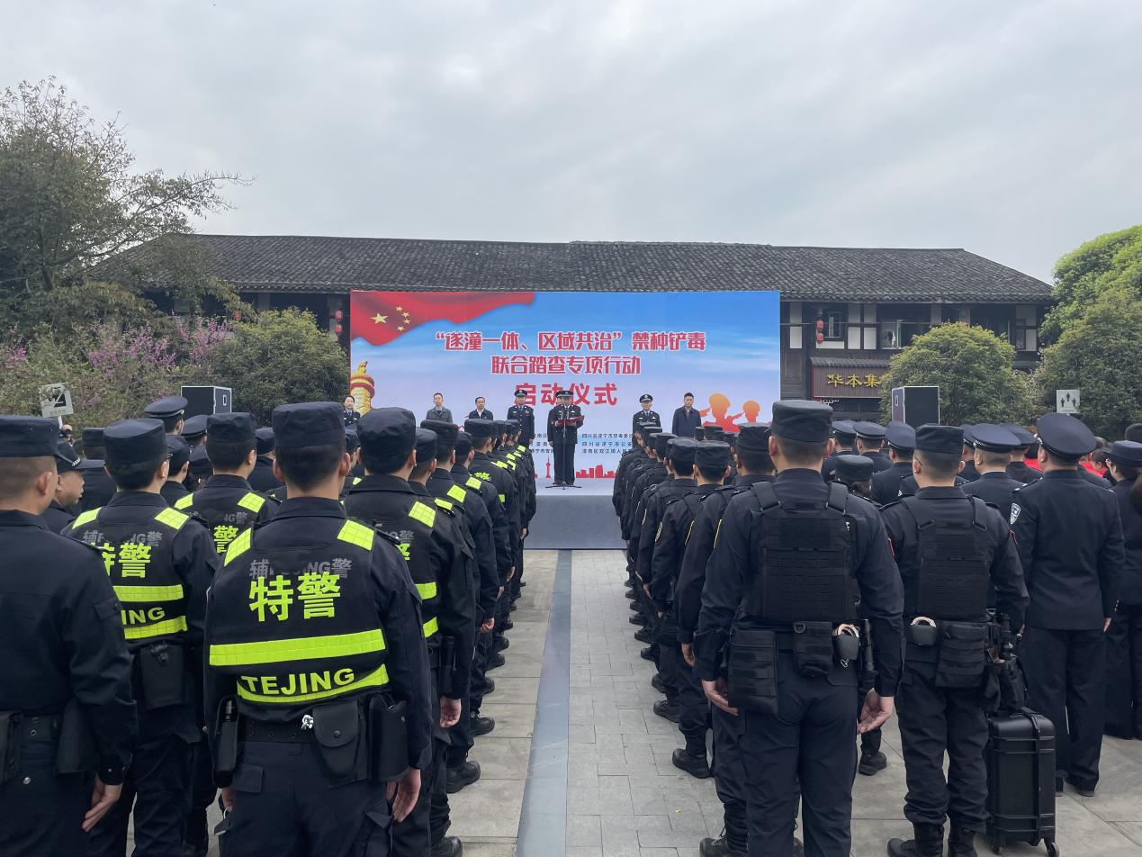 為進一步鞏固川渝兩地禁毒工作成果,切實加強兩地禁毒工作的協(xié)作配合,堅決遏制非法種植毒品原植物問題反彈,力爭實現(xiàn)“遂潼一體化”非法種植毒品原植物基本禁絕的目標(biāo)。3月20日上午,川渝“遂潼一體、區(qū)域共治”禁種鏟毒聯(lián)合踏查專項行動啟動儀式在重慶市潼南區(qū)雙江鎮(zhèn)楊闇公舊居廣場舉行,全面拉開兩地禁種鏟毒聯(lián)合踏查攻堅戰(zhàn)的序幕。潼南區(qū)禁毒辦、潼南區(qū)公安局相關(guān)警種,四川省遂寧市禁毒辦、遂寧市安居區(qū)公安局相關(guān)警種,出席啟動儀式。警用無人機專業(yè)操控人員,遂潼兩地毗鄰鎮(zhèn)(街道)代表、專職社工、禁毒志愿者代表200余人參加啟動儀式。
