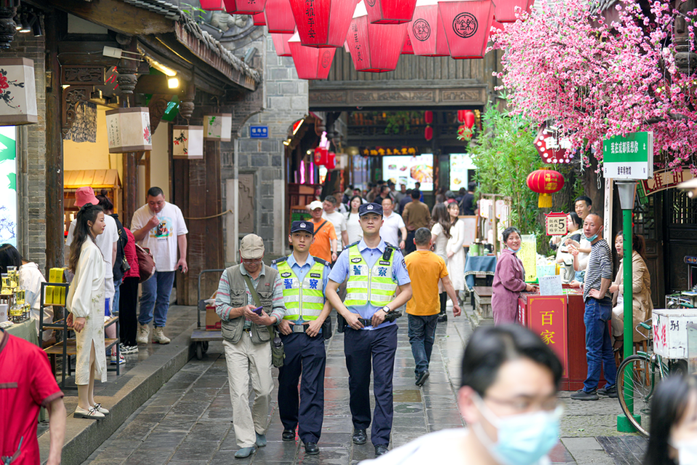 此外,針對(duì)打架斗毆、扒竊、旅游詐騙、強(qiáng)制推銷(xiāo)等影響旅游經(jīng)濟(jì)健康發(fā)展的突出問(wèn)題,該隊(duì)聯(lián)合巡警、交警、特警等警種部門(mén)及屬地派出所,整合優(yōu)勢(shì)警力,融合治安防控、社區(qū)警務(wù)、應(yīng)急處置等職能,以“3M”可視化為抓手,采取駐守現(xiàn)場(chǎng)點(diǎn)、重點(diǎn)巡邏線、總體把控面的警務(wù)工作模式,為景區(qū)和游客提供全天候安全保障服務(wù)。今年春節(jié)、清明節(jié)等節(jié)假日期間,武侯祠錦里、天府芙蓉園等景區(qū)景點(diǎn)持續(xù)保持了零發(fā)案、零事故、零投訴。(楊夢(mèng)詩(shī) 李中輝 文/圖)