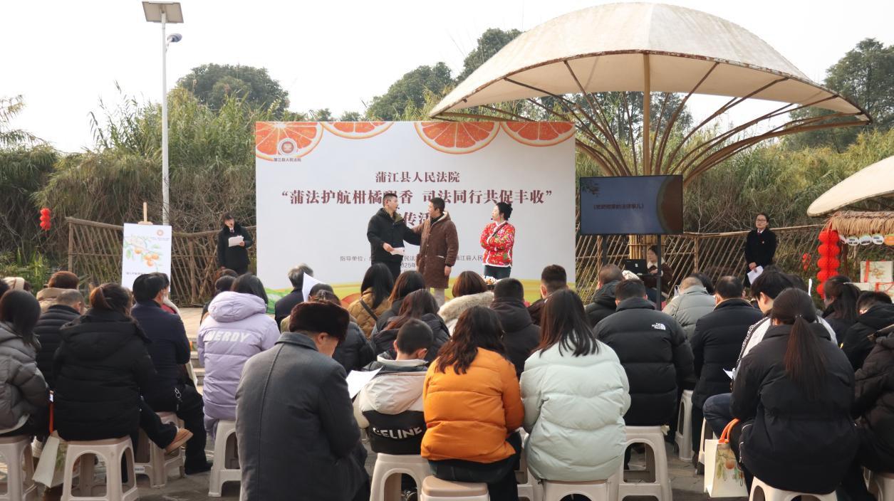 為助推四川文化強省、旅游強省建設(shè),積極響應(yīng)四川高院開展的“冬游四川·司法同行”系列活動,在成都中院的指導(dǎo)下,近日,四川蒲江法院依托蒲江“丑美生活節(jié)”(柑甜采摘節(jié))在蒲江縣西來鎮(zhèn)鐵牛村開展“蒲法護航柑橘飄香,司法同行共促豐收”宣傳活動。