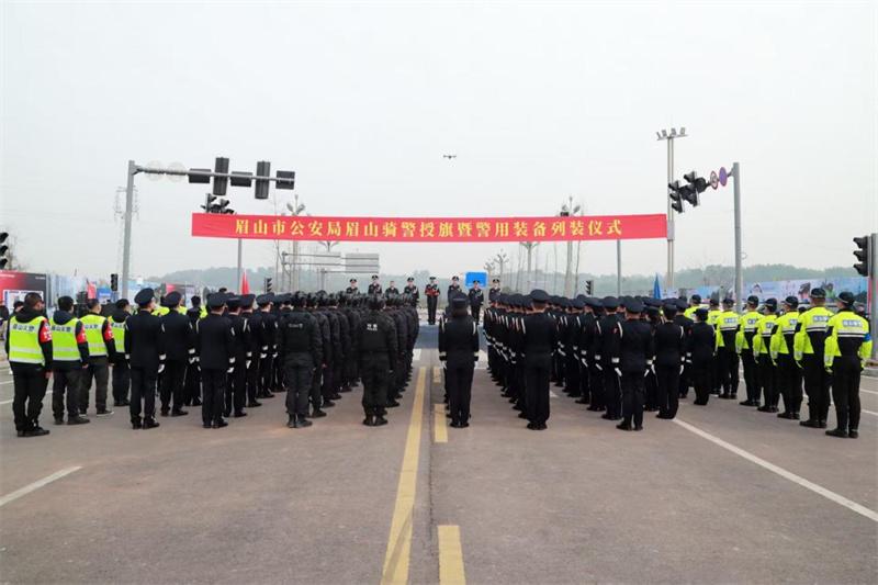 活動(dòng)現(xiàn)場(chǎng),鐵騎列陣氣勢(shì)恢宏,嶄新警用裝備整齊亮相,充分展現(xiàn)了眉山公安推進(jìn)工作現(xiàn)代化的堅(jiān)實(shí)成效。授旗環(huán)節(jié)中,警旗熠熠生輝,不僅是榮譽(yù)的象征,更承載著“對(duì)黨忠誠(chéng)、服務(wù)人民、執(zhí)法公正、紀(jì)律嚴(yán)明”的總要求,標(biāo)志著眉山騎警隊(duì)伍踏上專業(yè)化、規(guī)范化發(fā)展新征程?!?/p>