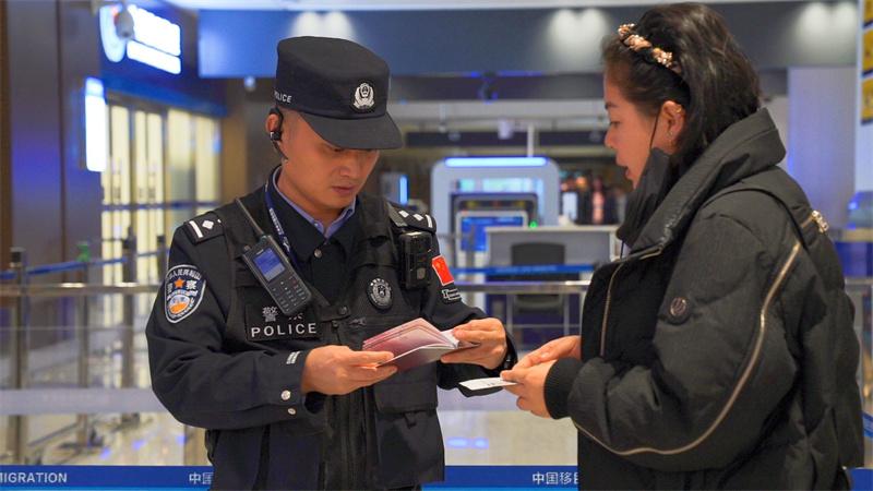 民警查驗(yàn)旅客出入境證件