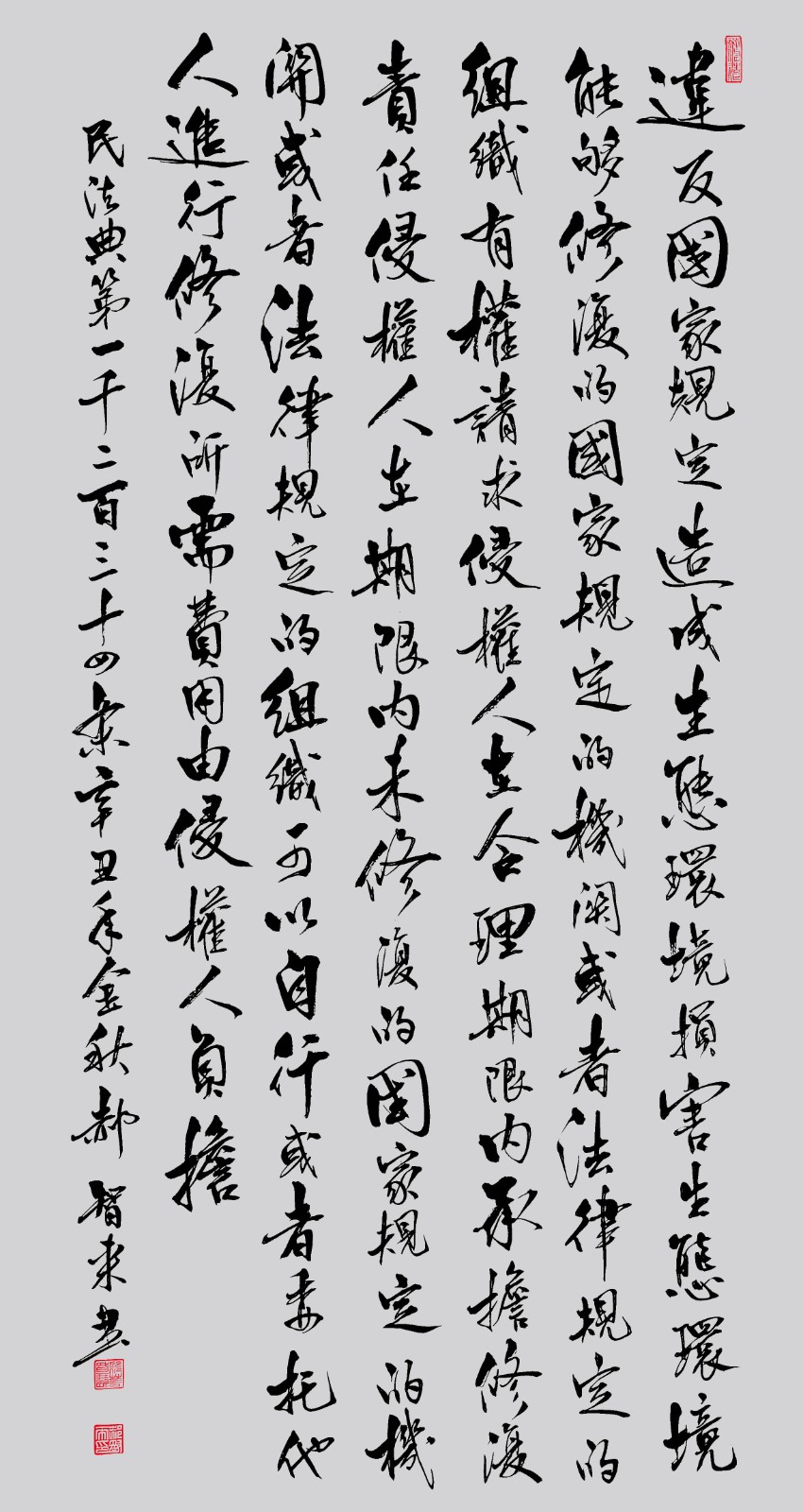 民法典第一千二百三十四條 違反國家規(guī)定造成生態(tài)環(huán)境損害,生態(tài)環(huán)境能夠修復(fù)的,國家規(guī)定的機(jī)關(guān)或者法律規(guī)定的組織有權(quán)請求侵權(quán)人在合理期限內(nèi)承擔(dān)修復(fù)責(zé)任。侵權(quán)人在期限內(nèi)未修復(fù)的,國家規(guī)定的機(jī)關(guān)或者法律規(guī)定的組織可以自行或者委托他人進(jìn)行修復(fù),所需費用由侵權(quán)人負(fù)擔(dān)。