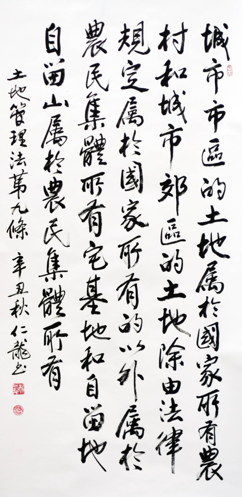 繼1600余位書法家參與書寫《中華人民共和國民法典》全部1260條法條之后,法治日報(bào)社聯(lián)合自然資源部法規(guī)司、自然資源部書畫研究會(huì)和北京昌平書法家協(xié)會(huì),將筆端對(duì)準(zhǔn)土地管理“一法一條例”,即《中華人民共和國土地管理法》和《中華人民共和國土地管理法實(shí)施條例》。