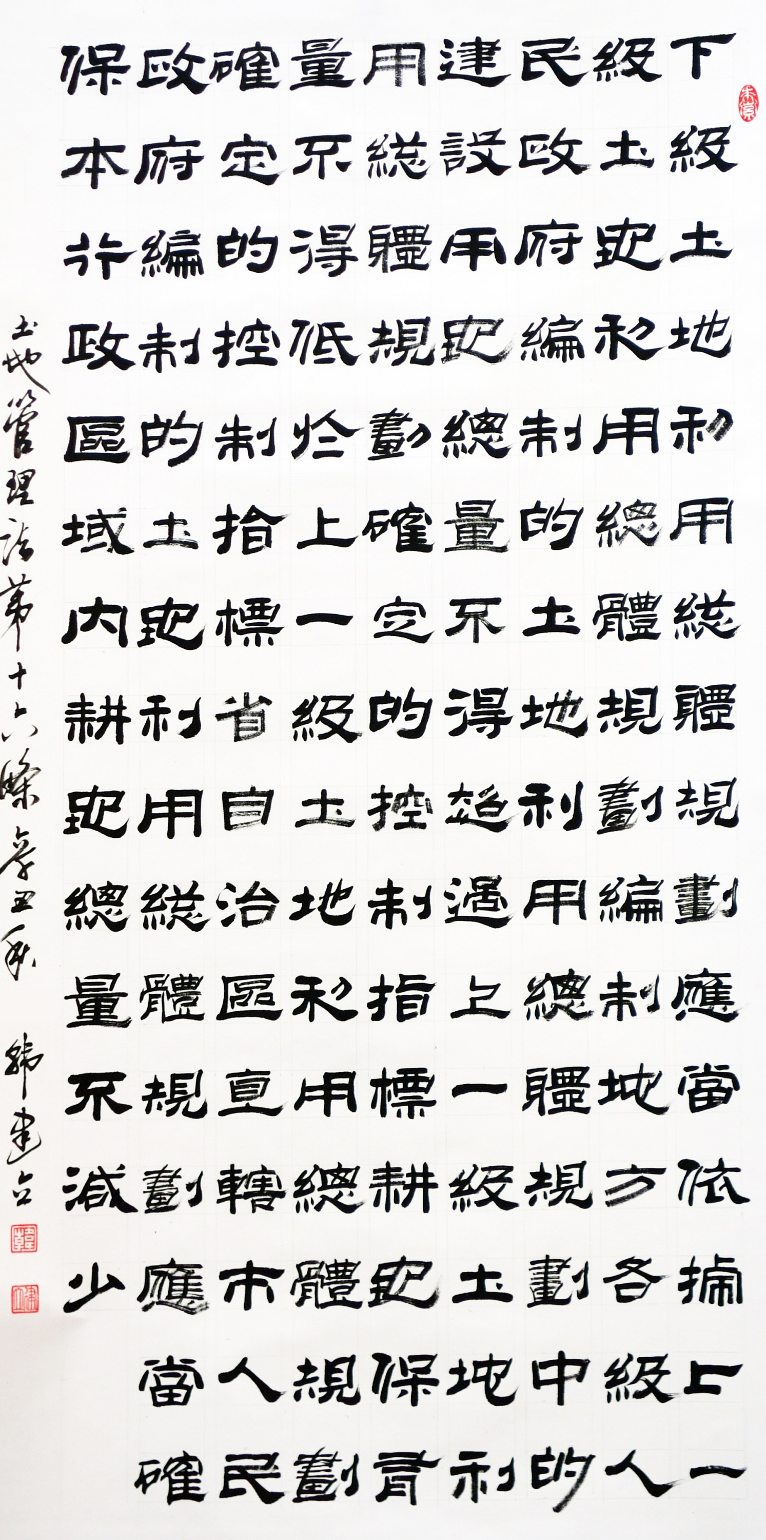 繼1600余位書法家參與書寫《中華人民共和國(guó)民法典》全部1260條法條之后,法治日?qǐng)?bào)社聯(lián)合自然資源部法規(guī)司、自然資源部書畫研究會(huì)和北京昌平書法家協(xié)會(huì),將筆端對(duì)準(zhǔn)土地管理“一法一條例”,即《中華人民共和國(guó)土地管理法》和《中華人民共和國(guó)土地管理法實(shí)施條例》。