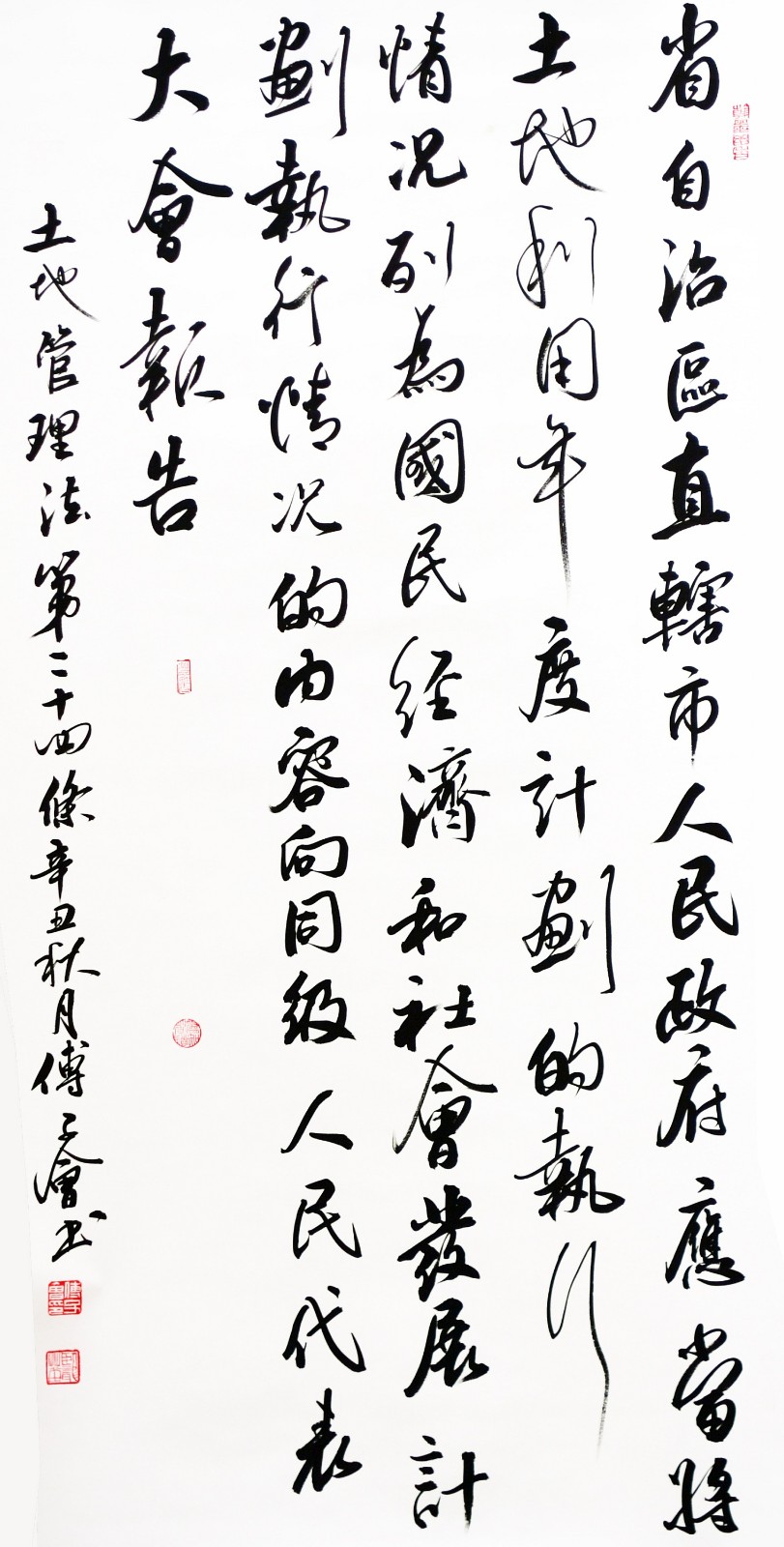 繼1600余位書(shū)法家參與書(shū)寫《中華人民共和國(guó)民法典》全部1260條法條之后,法治日?qǐng)?bào)社聯(lián)合自然資源部法規(guī)司、自然資源部書(shū)畫研究會(huì)和北京昌平書(shū)法家協(xié)會(huì),將筆端對(duì)準(zhǔn)土地管理“一法一條例”,即《中華人民共和國(guó)土地管理法》和《中華人民共和國(guó)土地管理法實(shí)施條例》。