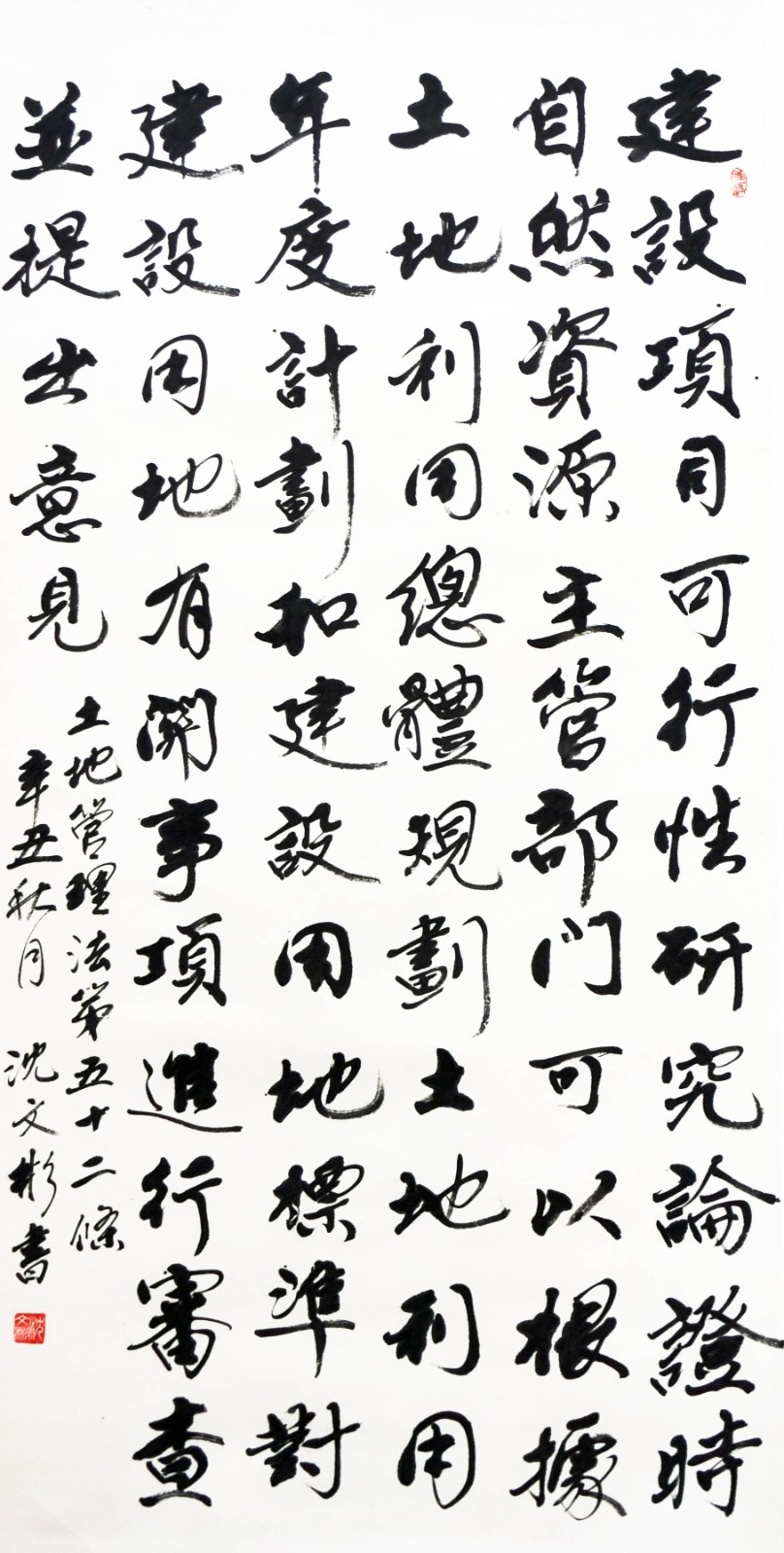繼1600余位書法家參與書寫《中華人民共和國(guó)民法典》全部1260條法條之后,法治日?qǐng)?bào)社聯(lián)合自然資源部法規(guī)司、自然資源部書畫研究會(huì)和北京昌平書法家協(xié)會(huì),將筆端對(duì)準(zhǔn)土地管理“一法一條例”,即《中華人民共和國(guó)土地管理法》和《中華人民共和國(guó)土地管理法實(shí)施條例》。