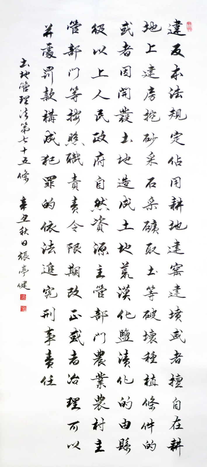繼1600余位書法家參與書寫《中華人民共和國民法典》全部1260條法條之后,法治日報(bào)社聯(lián)合自然資源部法規(guī)司、自然資源部書畫研究會和北京昌平書法家協(xié)會,將筆端對準(zhǔn)土地管理“一法一條例”,即《中華人民共和國土地管理法》和《中華人民共和國土地管理法實(shí)施條例》。