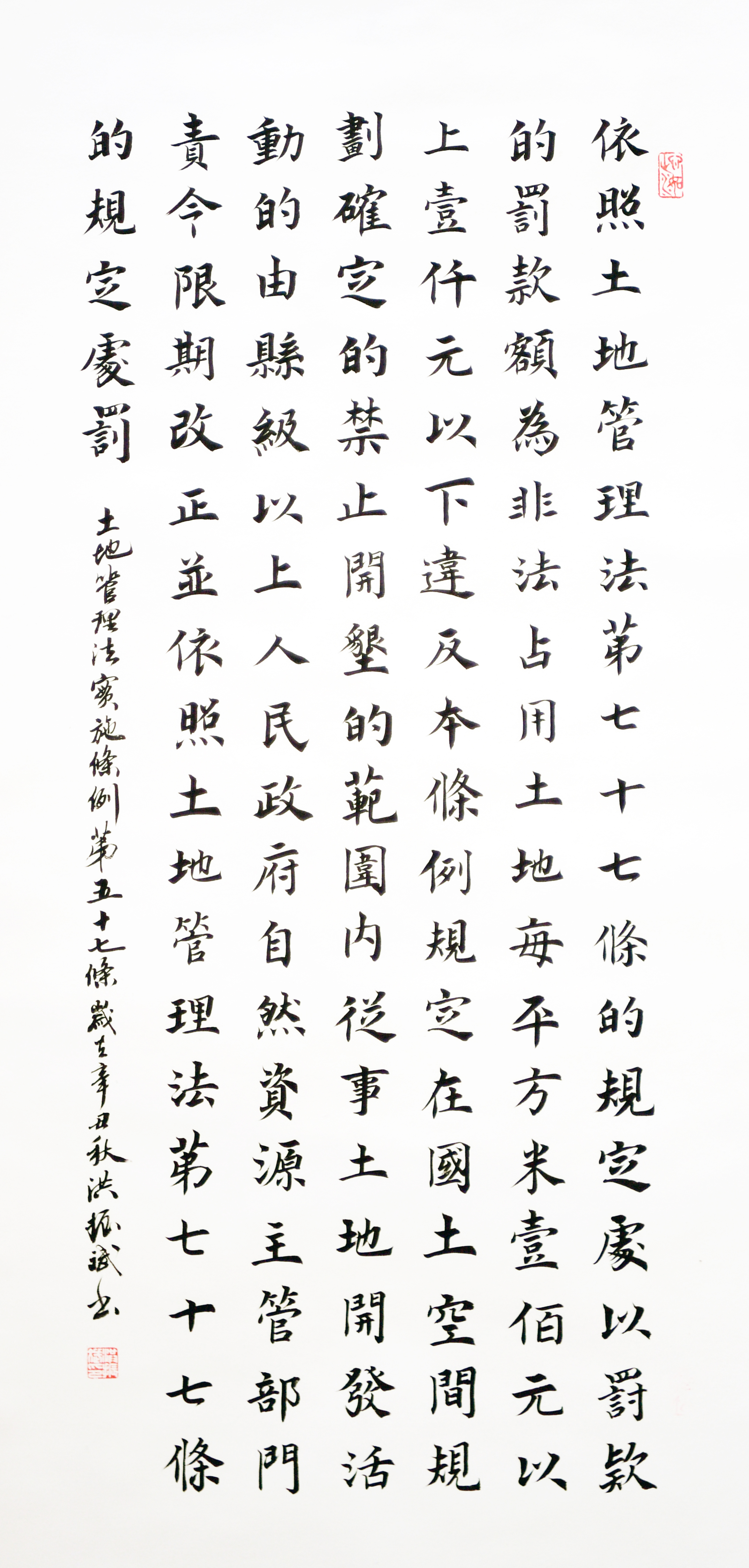 繼1600余位書法家參與書寫《中華人民共和國民法典》全部1260條法條之后,法治日報社聯(lián)合自然資源部法規(guī)司、自然資源部書畫研究會和北京昌平書法家協(xié)會,將筆端對準土地管理“一法一條例”,即《中華人民共和國土地管理法》和《中華人民共和國土地管理法實施條例》。